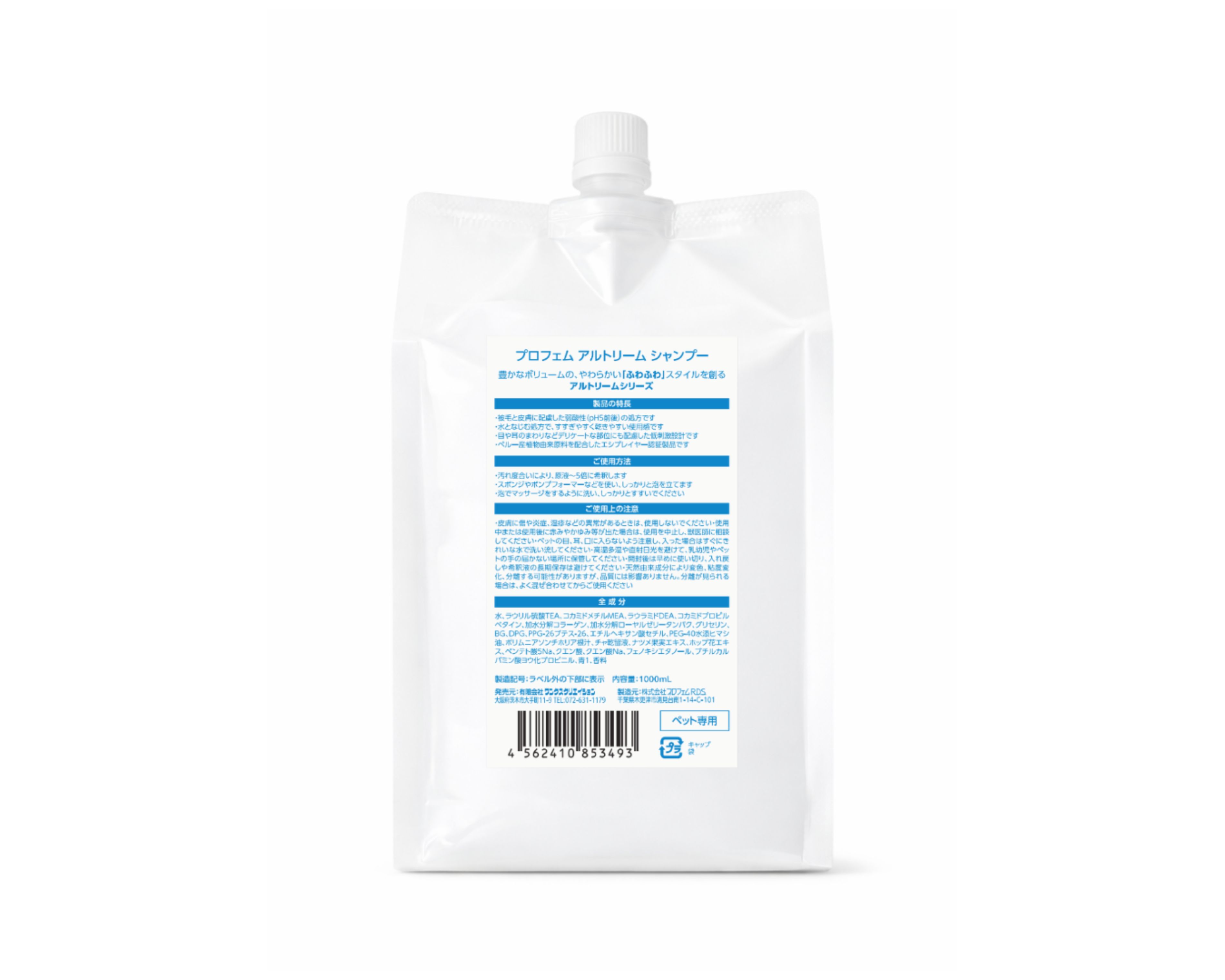 被毛のふんわり感・保湿感・洗い上がりの軽さを追求し、泡立ちのキメ細かさや泡持ちを向上。洗浄時の摩擦を軽減し、ふんわり仕上げに必要な根元からの立ち上がり感を損なわない処方です。