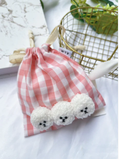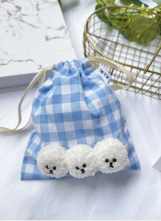 Mr. Klmu's Drawstring Bag / くるむくんギンガムミニ巾着
